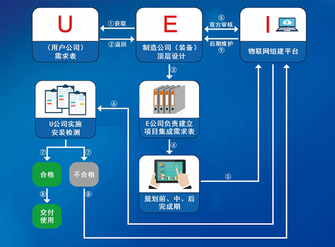 該項目是以印刷機械使用方U、印刷機械裝備制造企業(yè)E、物聯(lián)網(wǎng)平臺|三方的需求為基礎(chǔ),以印刷機械裝備制造企業(yè)(E)為核心,通過信息采集的方法與途徑了解印刷機械使用方(U)的需求, 針對其需求結(jié)合E的綜合規(guī)劃建立頂層設(shè)計將其需求內(nèi)容以數(shù)據(jù)化顯示,然后由物聯(lián)網(wǎng)平臺(I)根據(jù)U、E的需求與規(guī)劃實現(xiàn)信息內(nèi)容的互聯(lián)互通,實現(xiàn)整個生產(chǎn)經(jīng)營活動智能一體化。