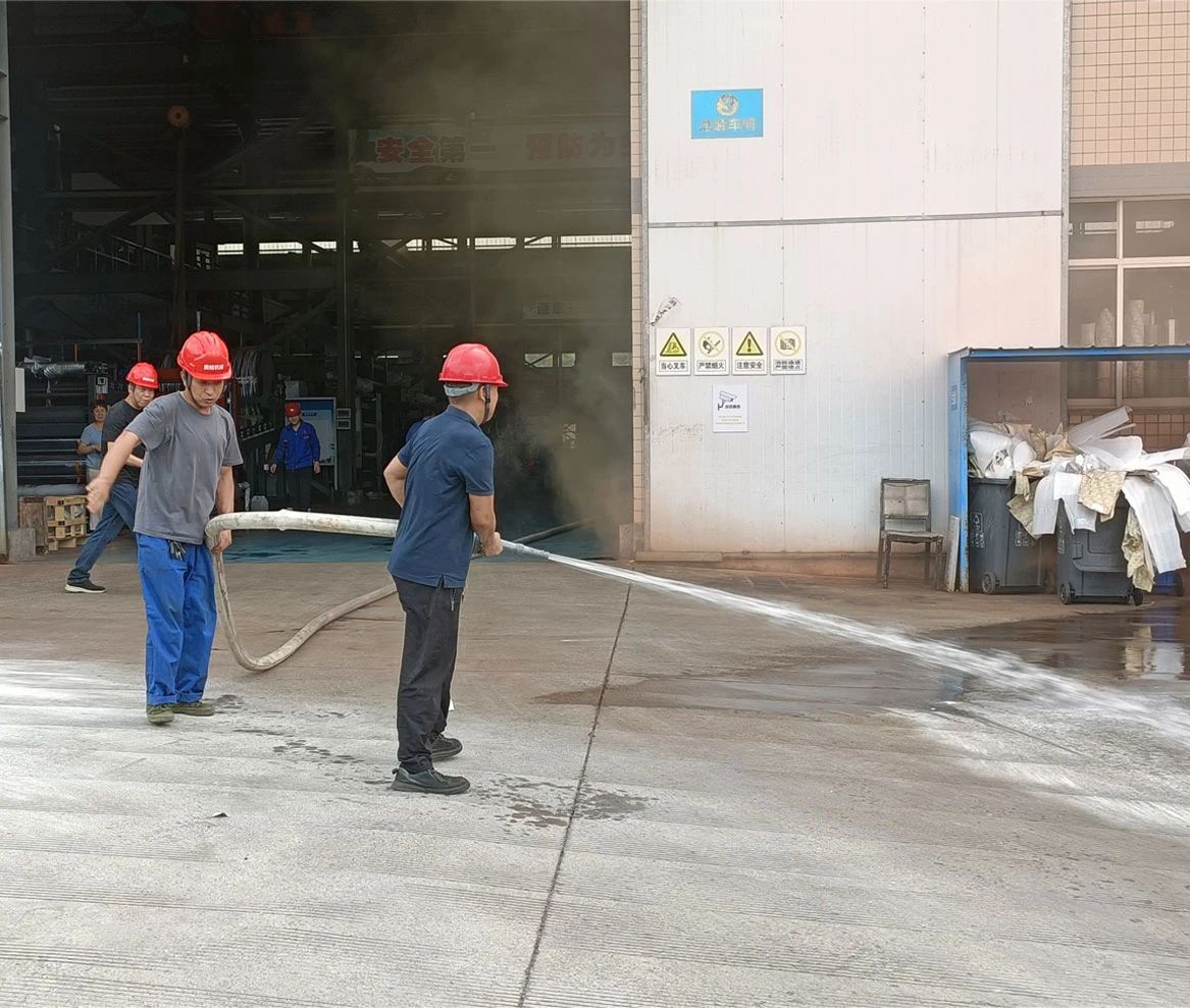 2.生產(chǎn)車間組同步演練消防栓滅火,在總裝車間搜救出受傷員工;