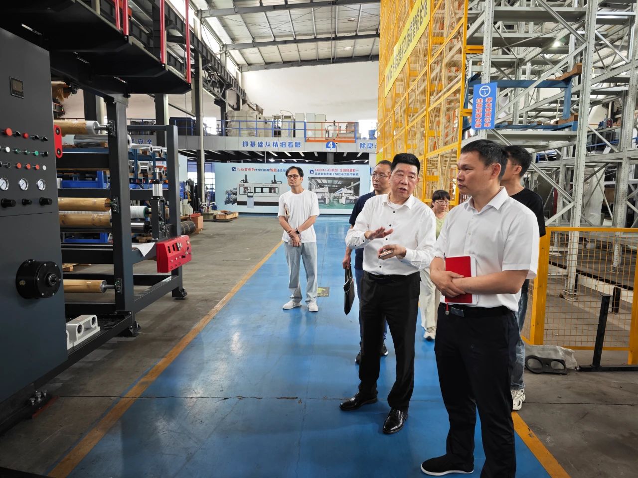 調(diào)研團(tuán)隊(duì)首先參觀了占地1.3萬(wàn)平方米的智能裝備制造基地,劉國(guó)方董事長(zhǎng)詳細(xì)介紹了全自動(dòng)凹版印刷機(jī)組的運(yùn)行流程,以及制作工藝過程。