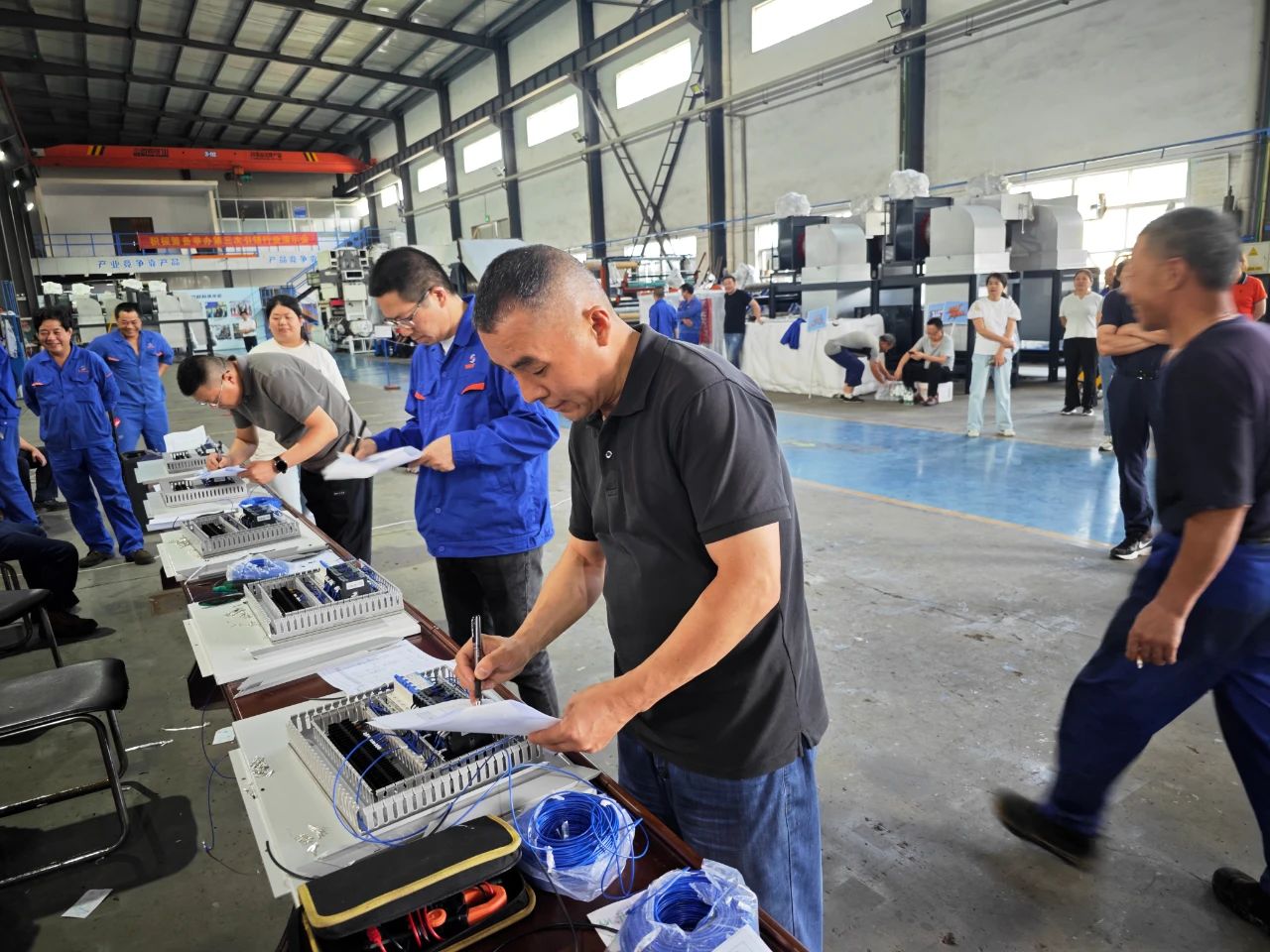 電工技能競(jìng)賽以“傳承匠心精神,技能智造未來(lái)”為號(hào)角率先開戰(zhàn)。六名精英電工在操作臺(tái)前凝神屏息,指尖在復(fù)雜的電路板與線束間翻飛如電,他們精確測(cè)量、迅速排故,每一次接線都是對(duì)毫厘標(biāo)準(zhǔn)的極致追求,每一次安裝都獲得了現(xiàn)場(chǎng)觀眾的肯定。這不僅是一場(chǎng)速度的角逐,更是精密技藝的無(wú)聲鏖戰(zhàn)。四名評(píng)委穿梭其間,目光銳利,依據(jù)操作規(guī)范、工藝精度與完成效率嚴(yán)格打分,最終的冠軍由電器車間孫鋼獲得。選手們展現(xiàn)出的精湛技藝與沉穩(wěn)心態(tài),贏得了評(píng)委們的高度評(píng)價(jià),也為在場(chǎng)觀摩的同事們樹立了學(xué)習(xí)的標(biāo)桿。
